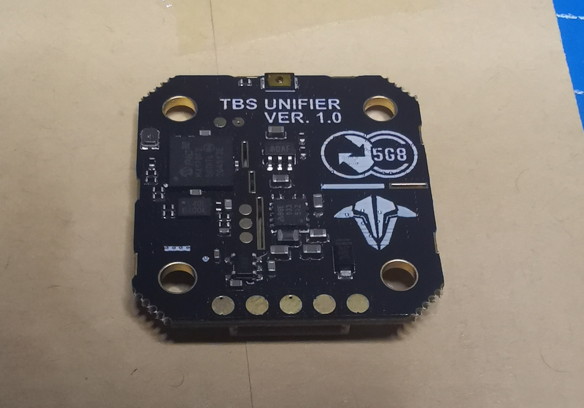 Auf der etwas weniger bestückten Seite, finden wir dann noch über Schriftzeug „TBS Unifier“ unseren Bindbutton, womit man den Sixty9 an sein CRFX Modul binden kann.