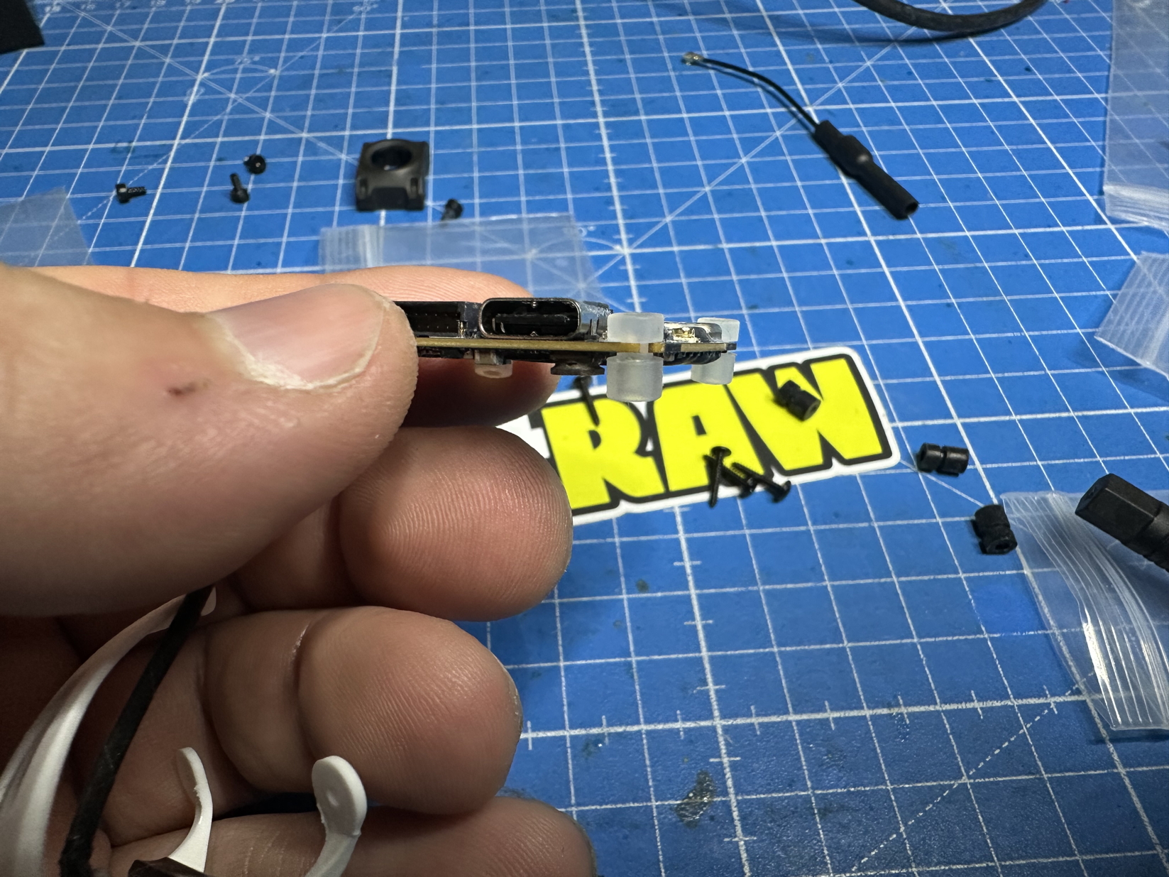 Jetzt müssen wir nur noch die DJI O4 einbauen. Dazu habe ich aus dem mitgelieferten HD Kabel die 2 SBus Kabel entfernt. Da ich für den Meteor65 PRO meine Jumpter T20 ERLS Funke nutzen werde.