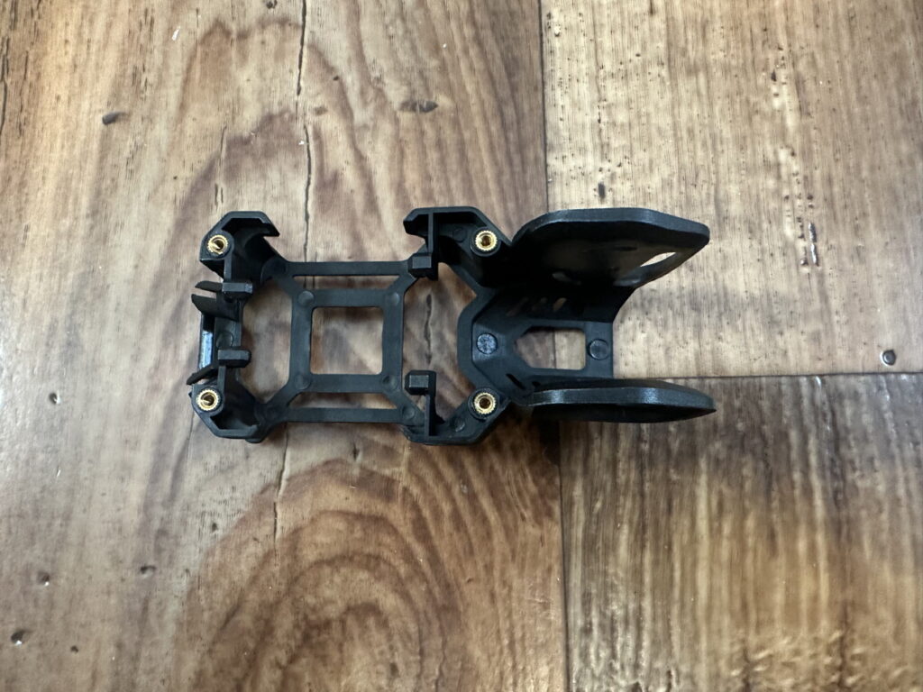Der Cage ist aus Spritzguss Kunststoff gefertigt und macht einen sehr stabilen Eindruck. Am Heck ist der BetaFPV Schriftzug in den kleinen „Heckspoiler“ eingelassen.
