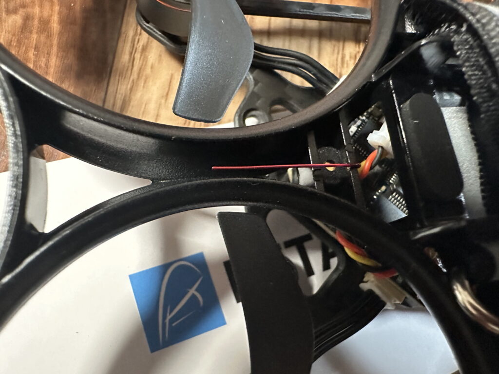 Die 2.4GHz ExpressLRS Antenne ist schön von unten mittig durch die Ducts geführt.