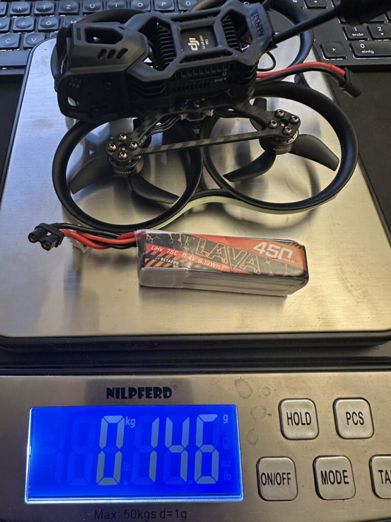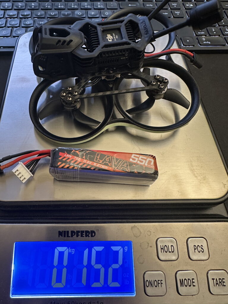 BetaFPV empfiehlt einen 3S Lipo zwischen 450mah und 550mah.