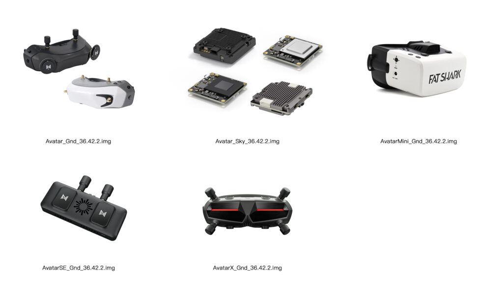In dem Zip file Sind alle benötigten Dateien enthalten und sogar noch ein paar Gimmicks, wie ein Wallpaper oder ein Bild der verschiedenen Modelle. Diese hatte ich zwar schon der Walksnail FAQ Liste erklärt. Aber das Bild hilft bestimmt nochmal.