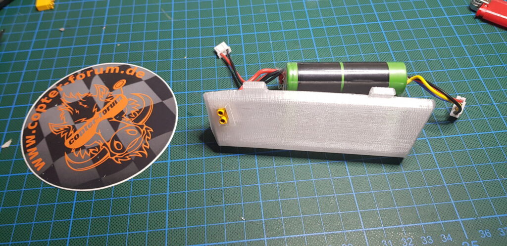 An der Funke müssen die 2 Stecke rausgeknippst werden und ein Batteriefachdeckel gedruckt werden.