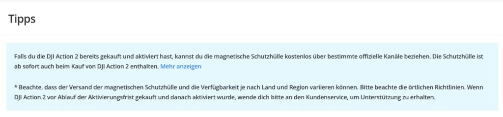DJI Action 2 magnetische Schutzhülle gratis nachbestellen