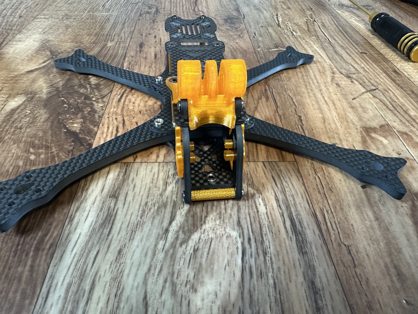 Dadurch gewinnt man für die FPV Kamera mehr Platz und das Heck wird etwas kleiner von der Tiefe. Das Konzept hat sich auch schon mehrfach bewährt.