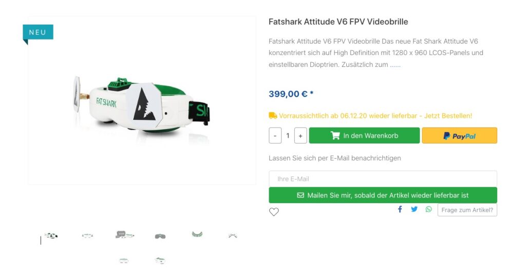 Die neue Fatshark Attitude V6* ist vorraussichtlich ab 06.12.2020 bei FPV24* lieferbar.