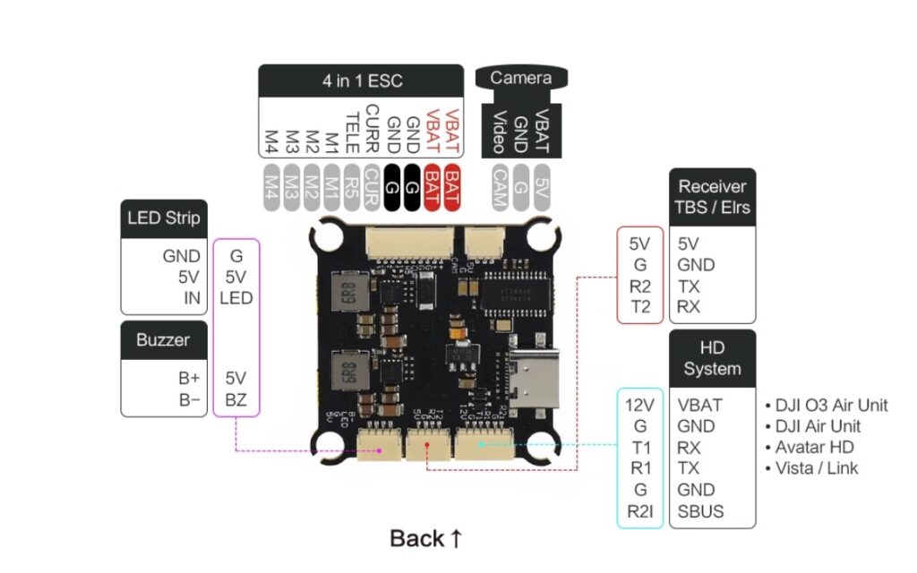 FC ESC Stack Pinout AxisFlying Argus ECO F405 60A BLS Stack