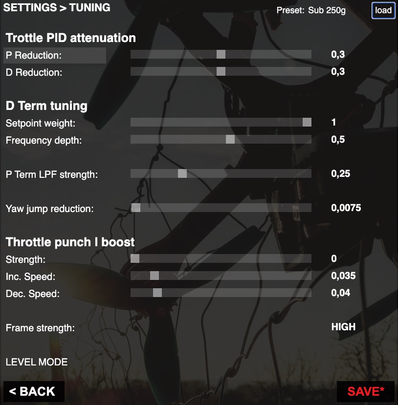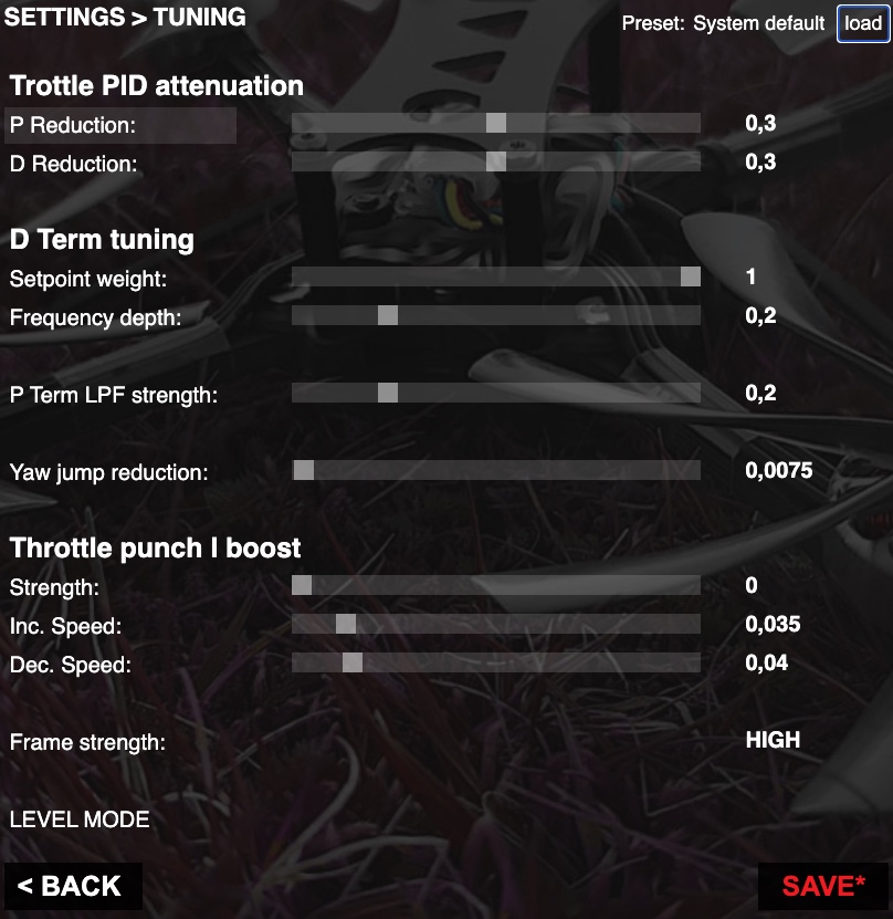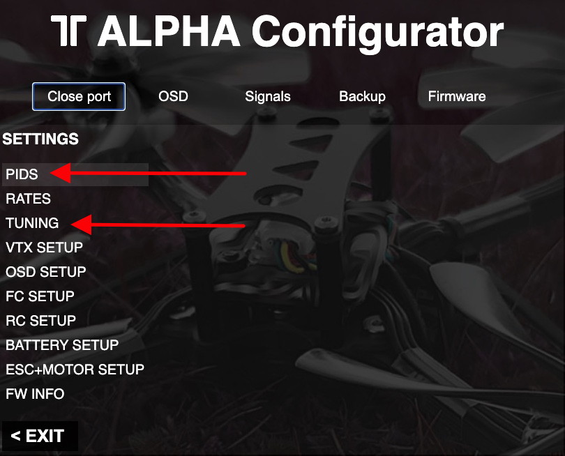 Die FETTEC Alpha Firmware hat Preset für verschiedene Copter.