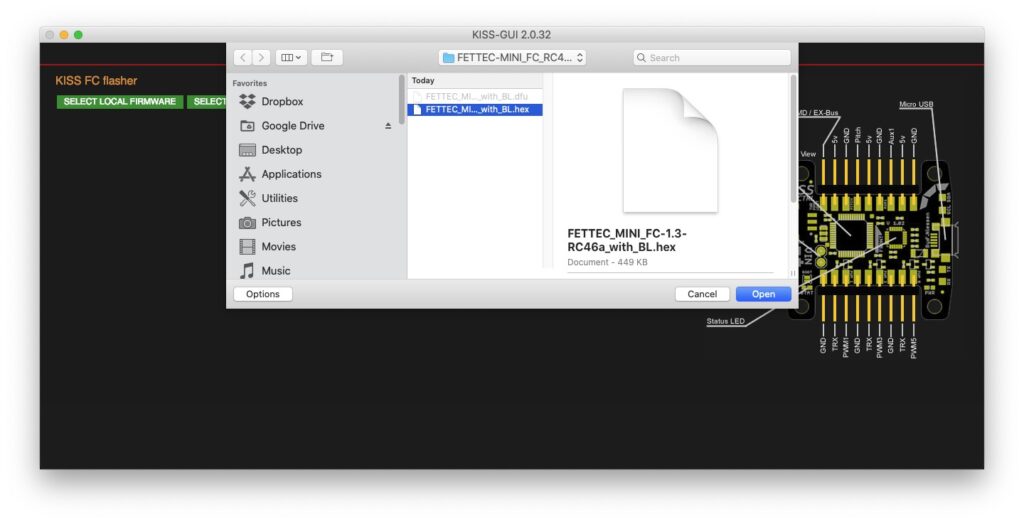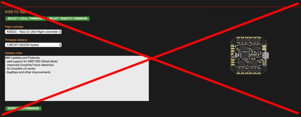 Lieder ist es möglich, hier den Flashvorgang durchzuführen und man hat danach die falsche Firmware auf der FETTEC Mini AIO 15A!