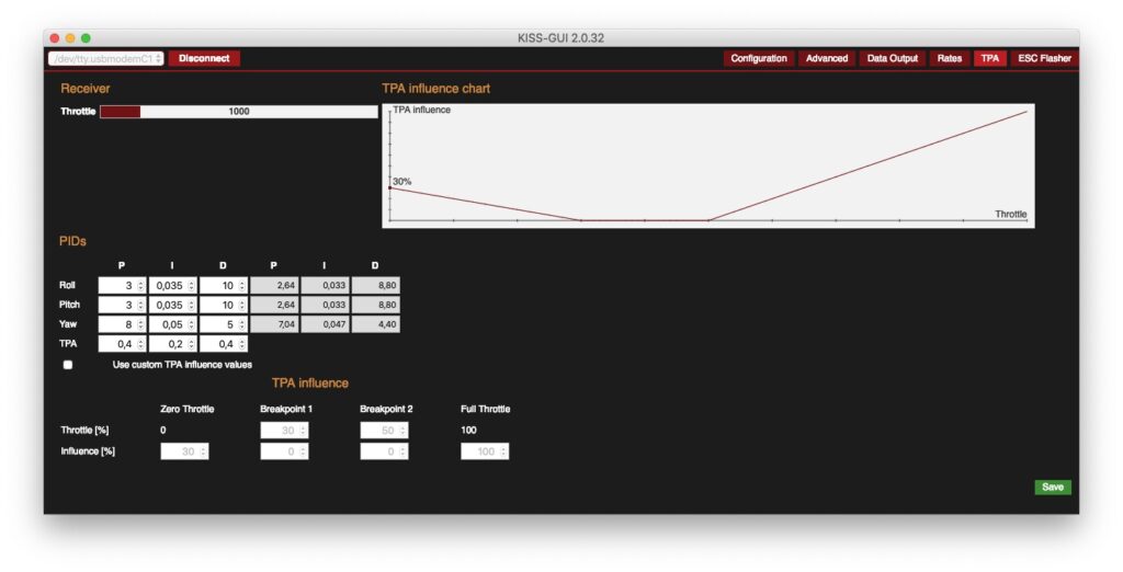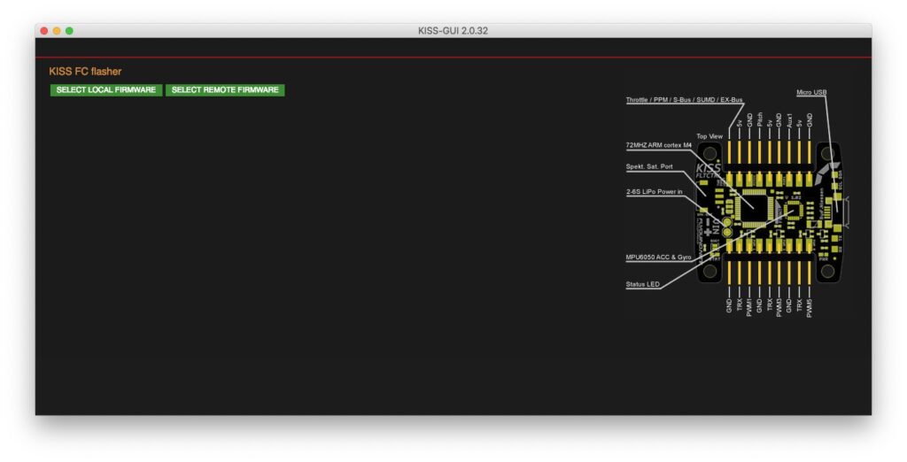 Wenn Ihr die FETTEC Mini AIO an die KISS GUI ansteckt, fehlt euch der Reiter zum FC flashen. Was eigentlich auch schon mal sehr gut ist.