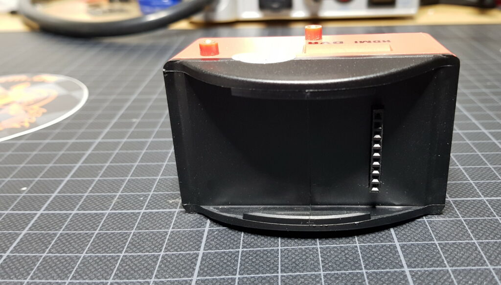 Auf der Oberseite finden wir dann 2 Gewindebuchsen so wie 2 Anschlüsse. Beschriftet mit HDMI und DVR.