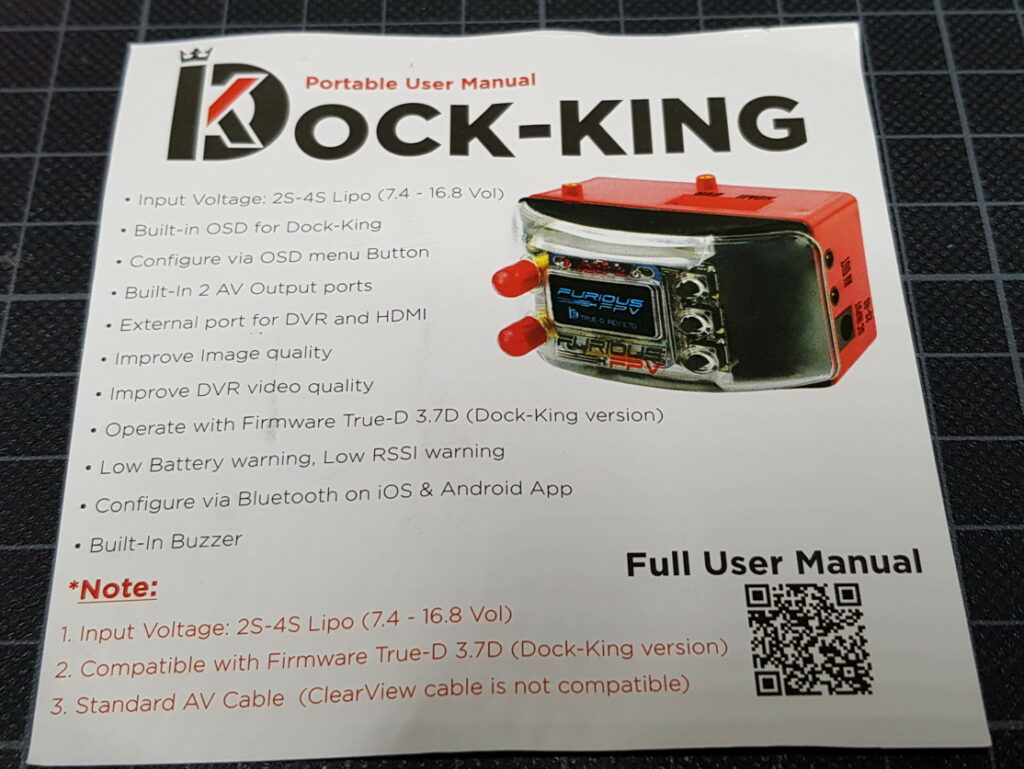 Auf dem Beipackzettel finden wir dann, was der Dock-King kann, so wie den Hinweis.