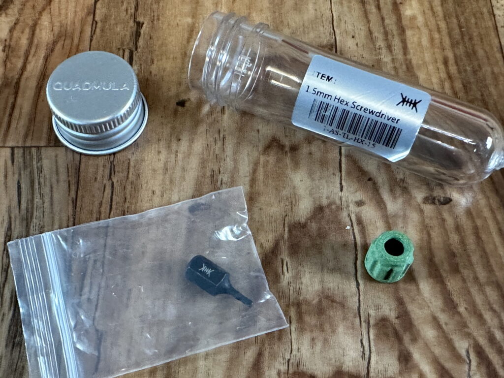 Bei Quadmula wird das gute Stück unter 1.5mm Hex Screwdriver* geführt und ist ein kleiner Bithalter für den mitgelieferten 1.5mm Inbus Bit.