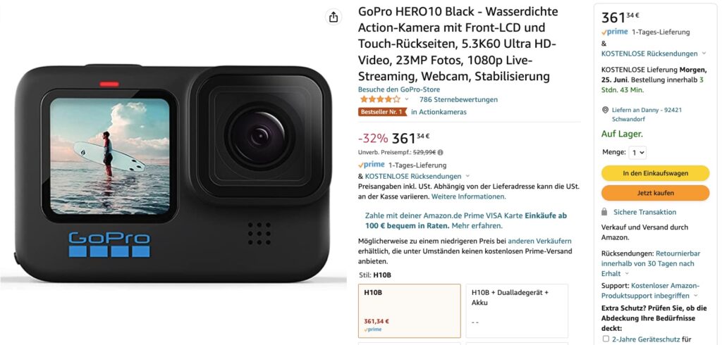 GoPro Hero 10 Black für 361,34 Euro bei Amazon
