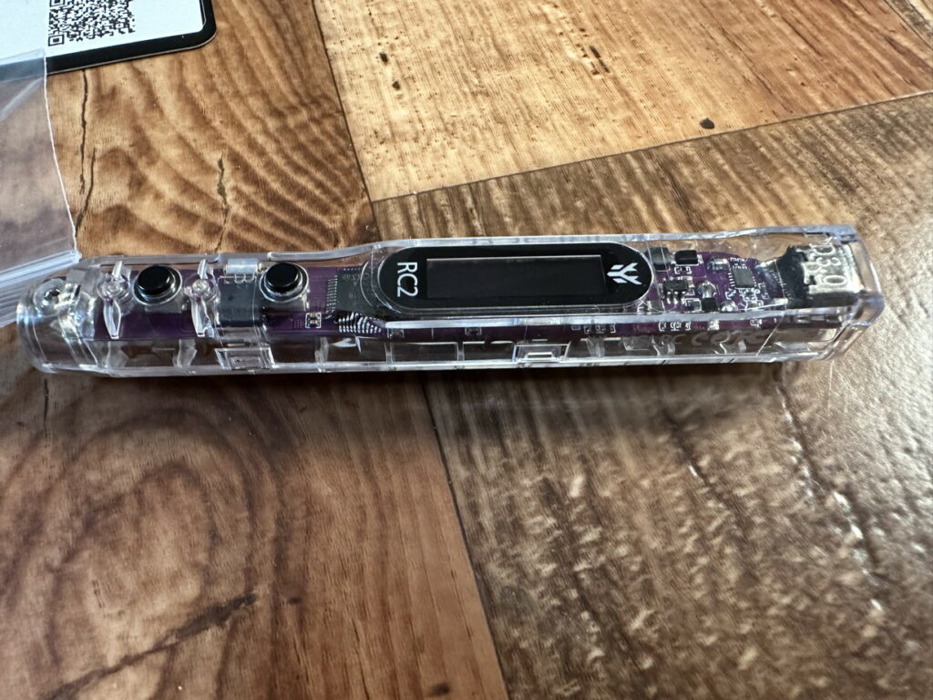 Durch das transparente Design lässte das lila gefärbte PCB erkennen. Optisch ein richtiger Hingucker