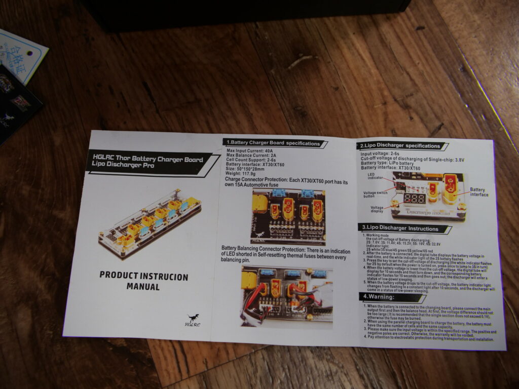 Auf der Rückseite, finden wir nochmals eine gut beschriebene Kurzanleitung, für das Laderboard, so wie auch für das Discharge Modul.
