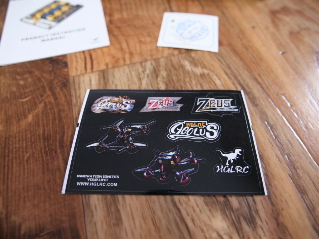 Auf dem Sticker Set finden wir verschiedene Produkte von HGLRC.
