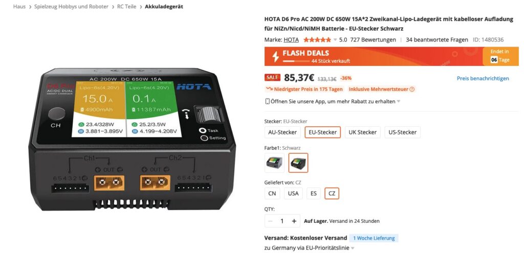 Firmwareupdates kommen regelmäßig, über das interne Netzteil kann man problemlos alles Akkus für unsere Racer laden (bis 200W).