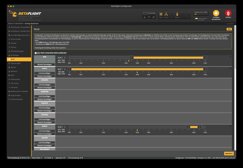 Beim PID Tuning und der Betaflightkonfiguration, wurde sich wirklich Mühe gegeben. Der iFlight Defender 25 liegt sehr gut in der Luft und eigentlich, wenn man keine Sonderwünsche hat, muss man nur die Modis an seine Funke anpassen.