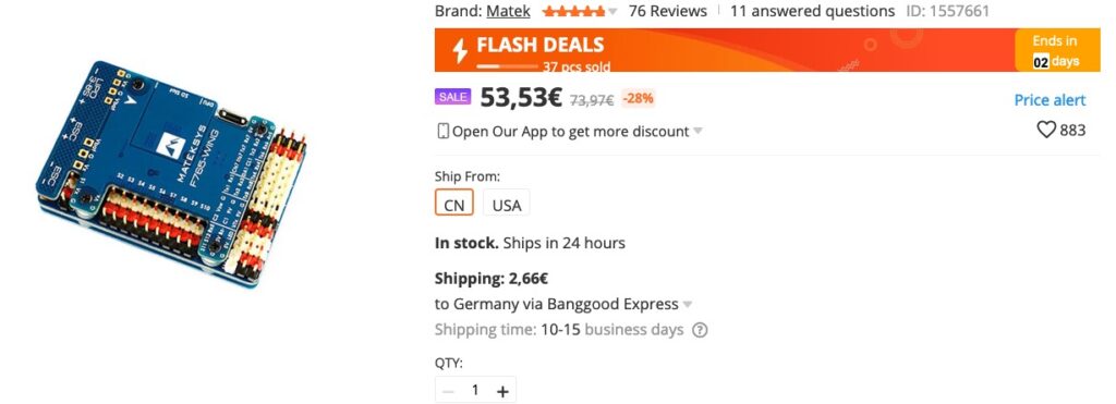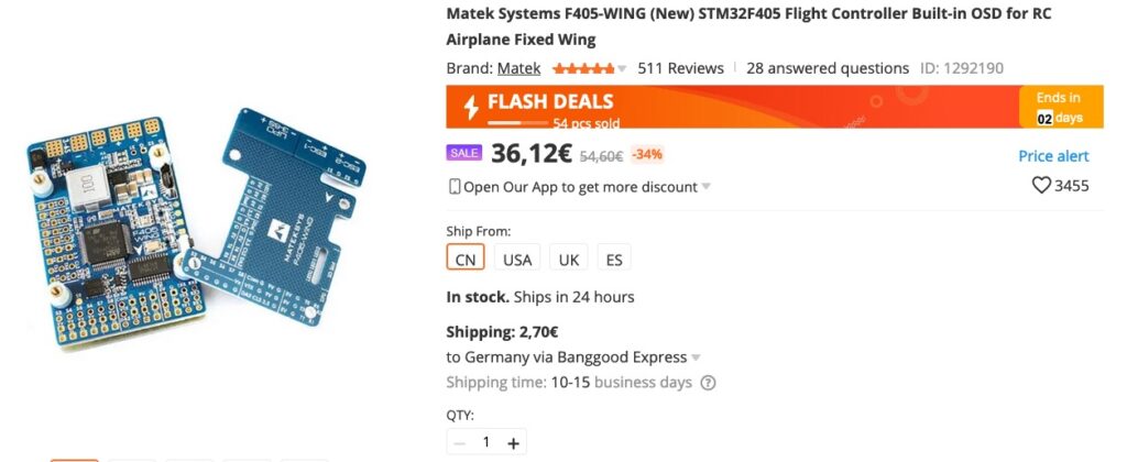 Matek F405-Wing* noch 2 Tage im Flash Deals auf Banggood*.