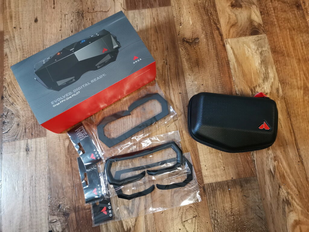 In dieser Schachtel finden wir ein Case in der sich die FPV.one Pilot befindet und 1x Klettverschluss zum Aufkleben, ein Facepad aus Schaumstoff, so wie ein Facepad gepolstert mit Kunstleder.