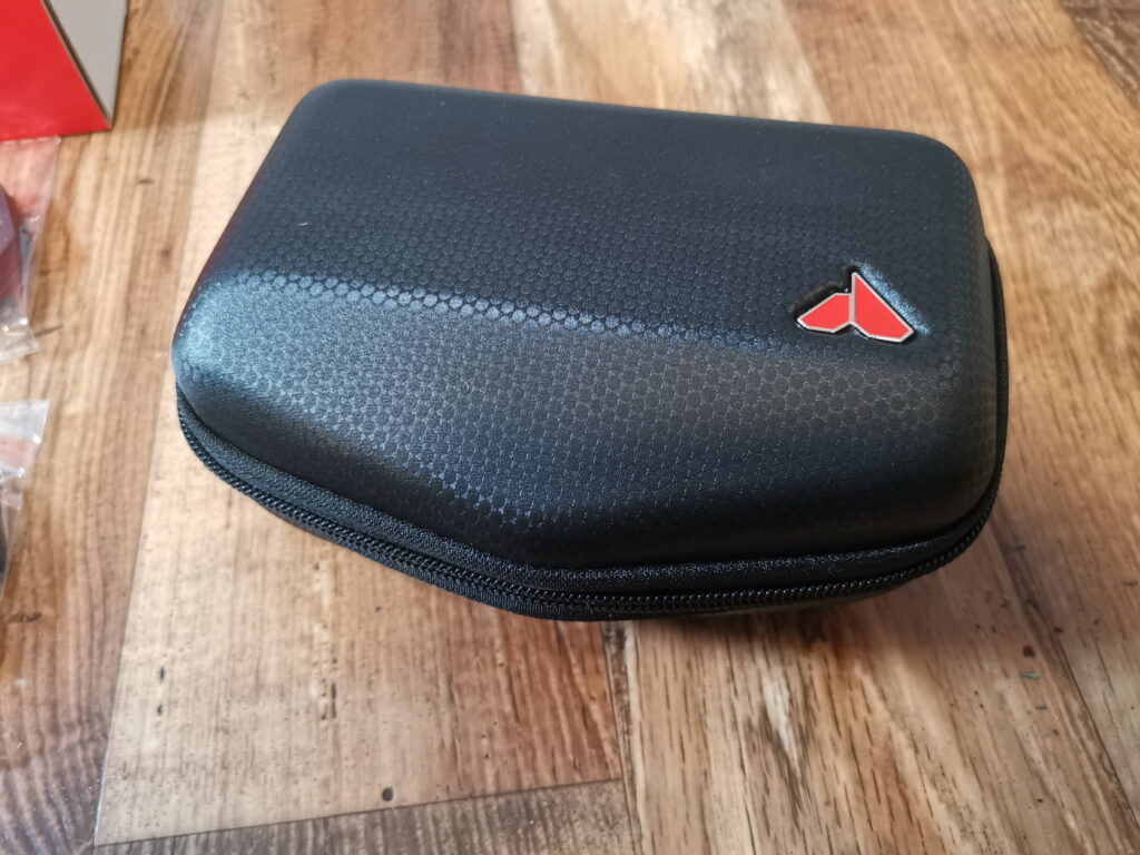 In dem stabilen passgenauen Case, dass sich mit einem Reißverschluss öffnen lässt befindet sich unsere neue Orqa. Die dann im gunmetalgrey mit einem Mikrofasertuch das Licht erblickt.