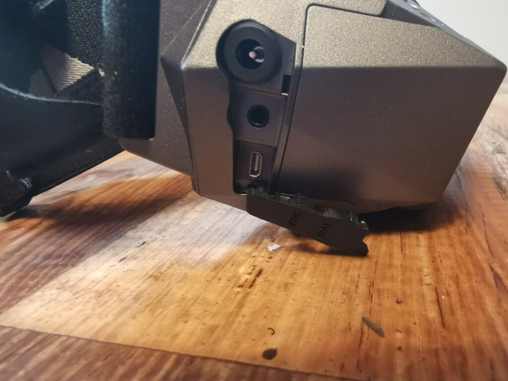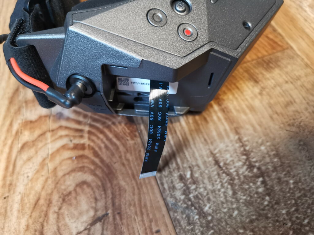 Auf der rechten Seite, ist wie beim Vorgängermodell ein geschlossener Deckel, der für das FPV.Connect vorgesehen ist. Darunter finden wir ein Flachbandkabel.