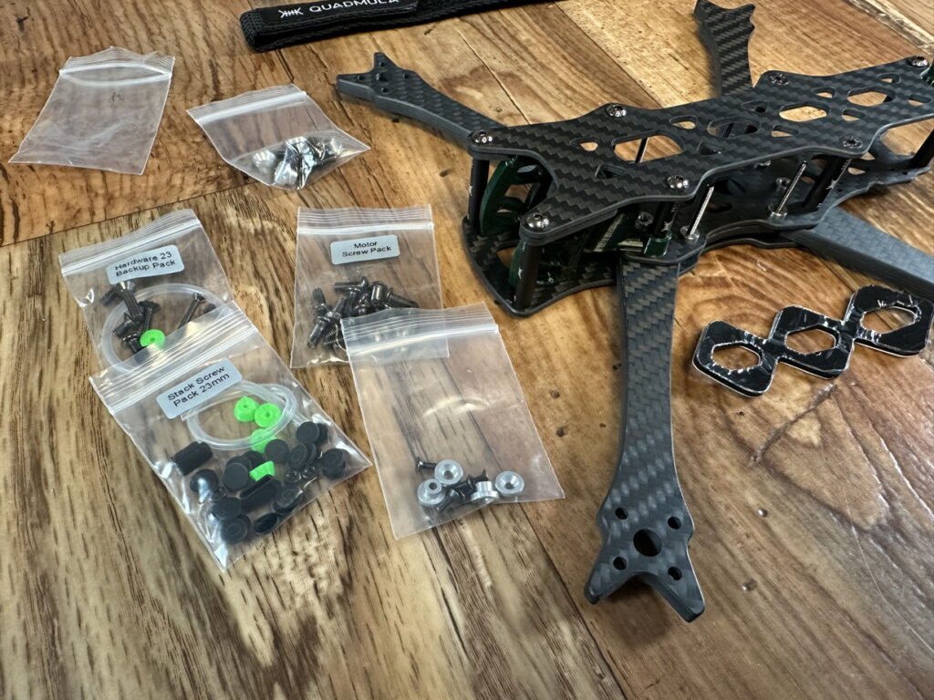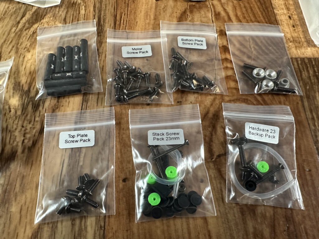 Jetzt haben wir natürlich noch ein paar schrauben über, wie die Motorschrauben, Stackmount, Backupscews usw…