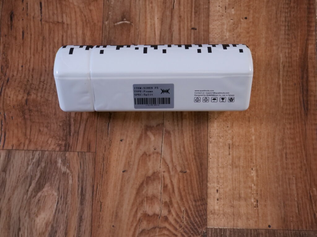 Der Quadmula Siren F5 Split* kommt in der typisch markanten Verpackung von Quadmula, in der auch der Siren F3 oder Siren F3 Split verpackt wird.
