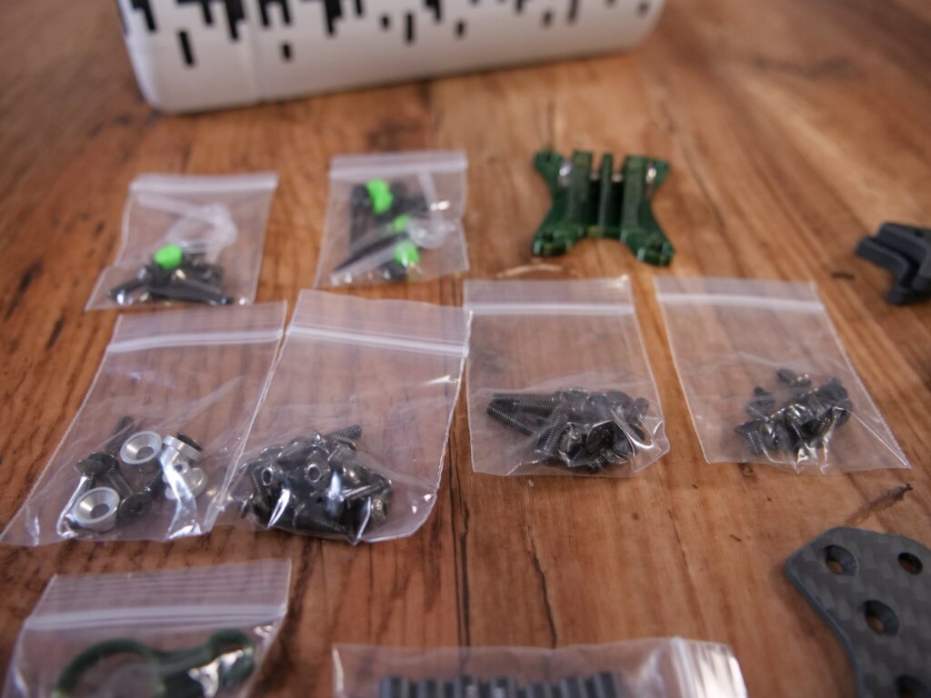 Alle Teile, besonders die Schrauben, sind wieder logisch sortiert.