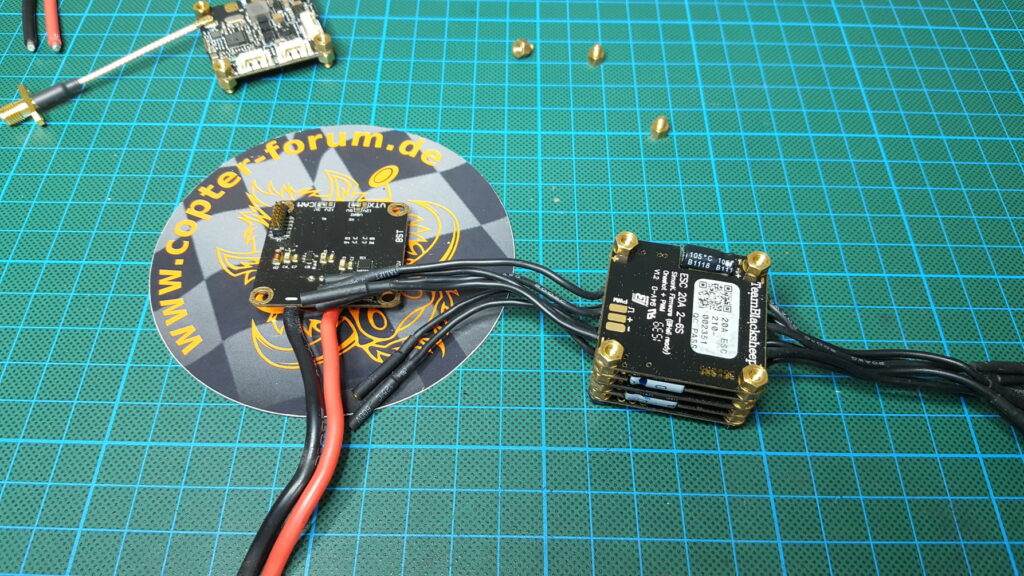 Soviel mal zum Packungsinhalt, der PFVision sieht schon mal gut verarbeitet aus. Auf dem großen Chip wurde das TBS Logo eingefräst. Die Lötstellen sehen alle sehr gut aus.