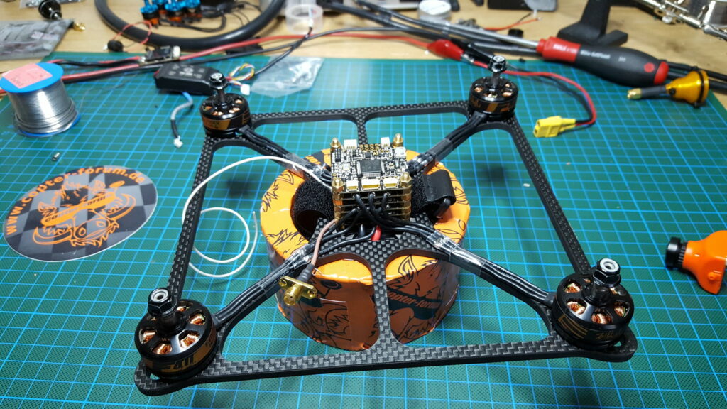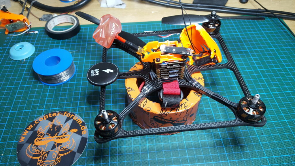 Anscheinend habe ich beim Update der Wolfbox was falsch gemacht…. zumindest habe ich dort eine ganz grausame Latenz drin. Darum hab ich vorläufig erstmal den X4R wieder eingebaut. Um den Copter erstmal einstellen zu können.