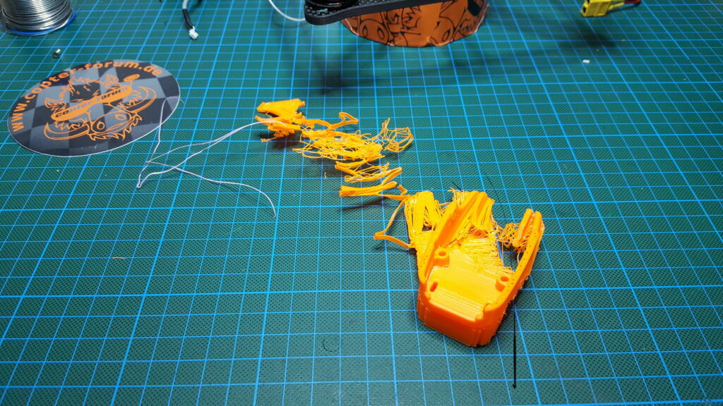 Jetzt fehlte noch das Canopy, das man sich selber ausdrucken muss. Der Druck hat mich schon ein wenig geärgert. Da ich nicht wirklich eine gute Position zum Drucken gefunden habe. Zu guter Letzt hab ich das einfach mit Support hochkant gedruckt. Das hat mir das beste Ergebnis geliefert. Anschließend habe ich das ganze noch mit Aceton eingepinselt, um die Geschichte noch etwas stabiler zu machen.
