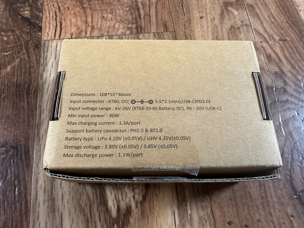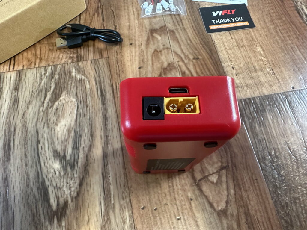 Seitlich befindet sich die Stromzufuhr, die über XT60 (6V – 26V, somit diesmal bis 6S) und DC 5.5×2.1mm Rundstecker (9V – 20V) genutzt werden können. Für die USB-C Schnittstelle wird mindestens ein 40W Netzteil mit passenden Kabel benötigt.