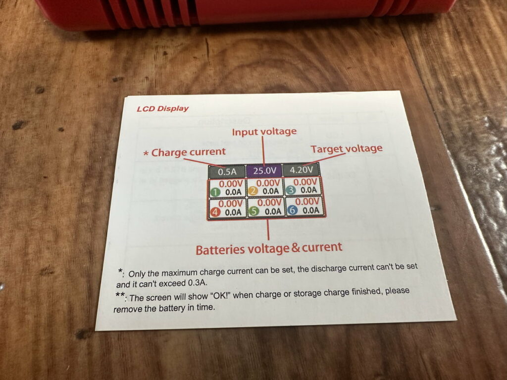 | Battery type | LiPO 4.20V(±0.05V) / LiHV 4.35V (±0.05V) |