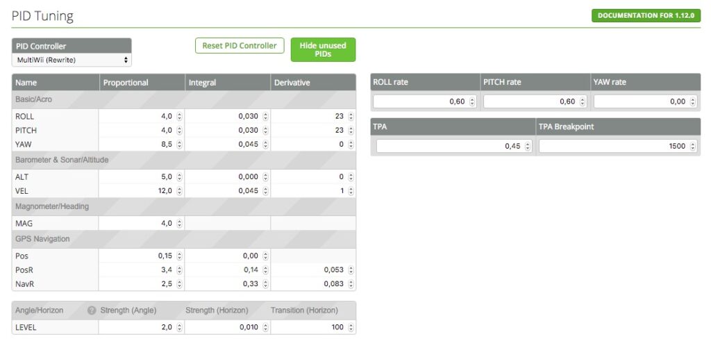 Oneshot ist Aktiviert mit einer Looptime von 1000. Die PID werte habe ich vom Blackout übernommen